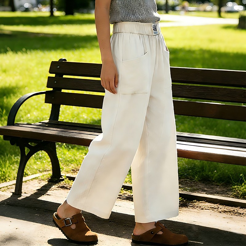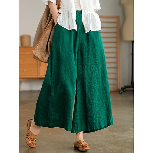 Per donna Misto cotone Gamba larga Pantaloni Larghi Streetwear Semplice Casual Lungo Vita Alta Semplice Coulisse Tasca Baggy Morbido All'aperto Confortevole Micro-elastico All'aperto Vacanza Casual