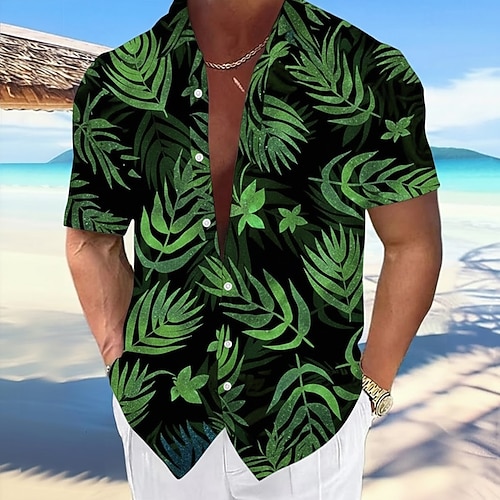 Per uomo Foglia Piante Tropicali Bagliore al neon Camicia hawaiana estiva Camicia con Bottoni Camicia Aloha Manica Corta Hawaiano Vacanza Abbigliamento mare Estate Primavera Collo ripiegato Stampa 3D
