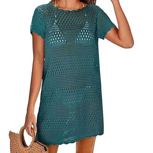 Per donna Costumi da bagno Copricostume Costume da bagno Taglio Uncinetto Vacanza Abbigliamento da Spiaggia Semplice Girocollo Maniche Corte Costumi da bagno