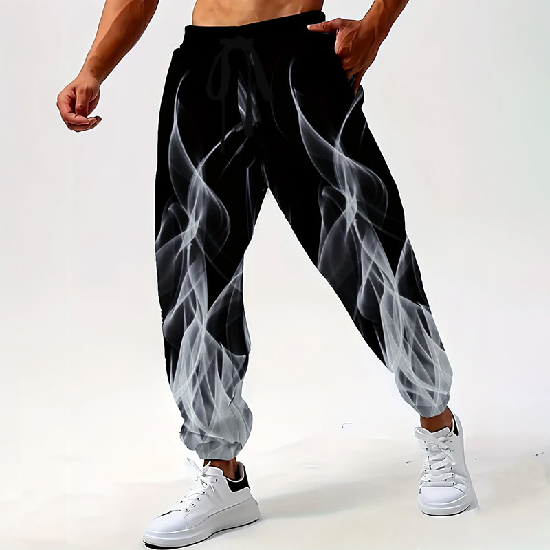 Men's Abstract Flame Sweatpants Joggers Trousers Mid Waist Drawstring Elastic Waist Casual Jogging Streetwear Workout Athletic Sweatpants with Pockets Spring Fall 3D Print Yellow Red Blue