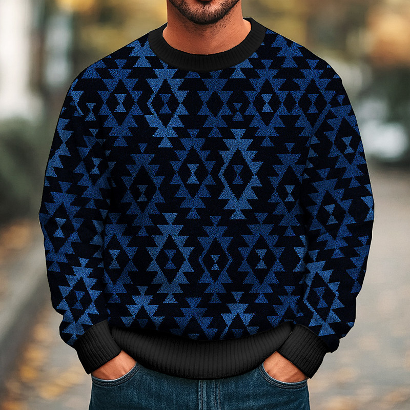 Men's Geometic Pullover Sweater Jumper Knitwear Crewneck Casual Vacation Home Street 3D Print Knitting Keep Warm Long Sleeve Spring Fall Winter Red Blue Green