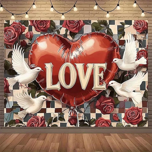San Valentino arazzo Striscioni Coperta Rose Amore Cuori Carino Romantico 3D Da serata Soggiorno Sfondi di ripresa Decorazione per proposta di matrimonio Arredamento per la casa