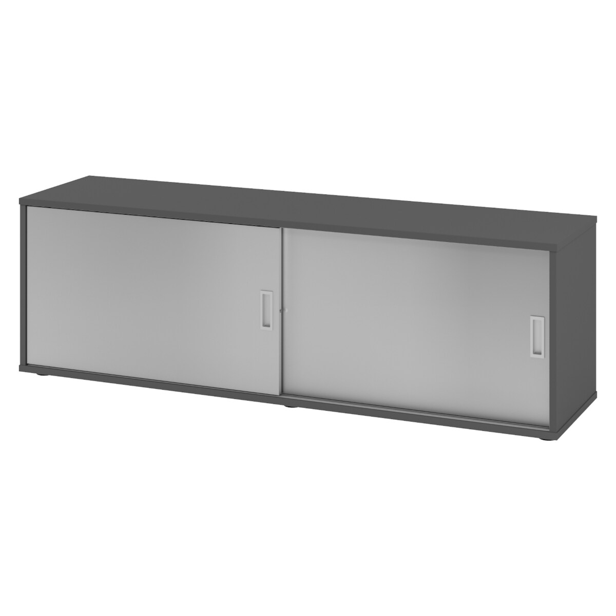 bümö Lowboard Schiebetürenschrank in Graphit/Silber - Büromöbel Sideboard aus Holz, 160 cm breit, Büroschrank nur 40 cm schmal, Büro Schrank mit