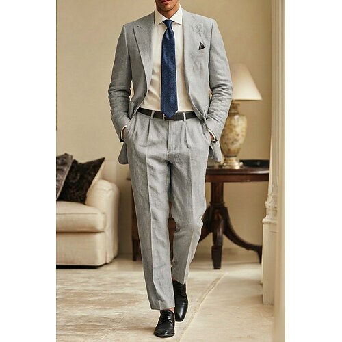 Uomo Completi in Lino Abiti da lavoro Casuale Matrimonio Bianco Rosa Primavera Estate Giacca Bavero a lancia Moda Quotidiano Tinta unita Vestibilità su misura 2 pezzi Monopetto Due Bottoni