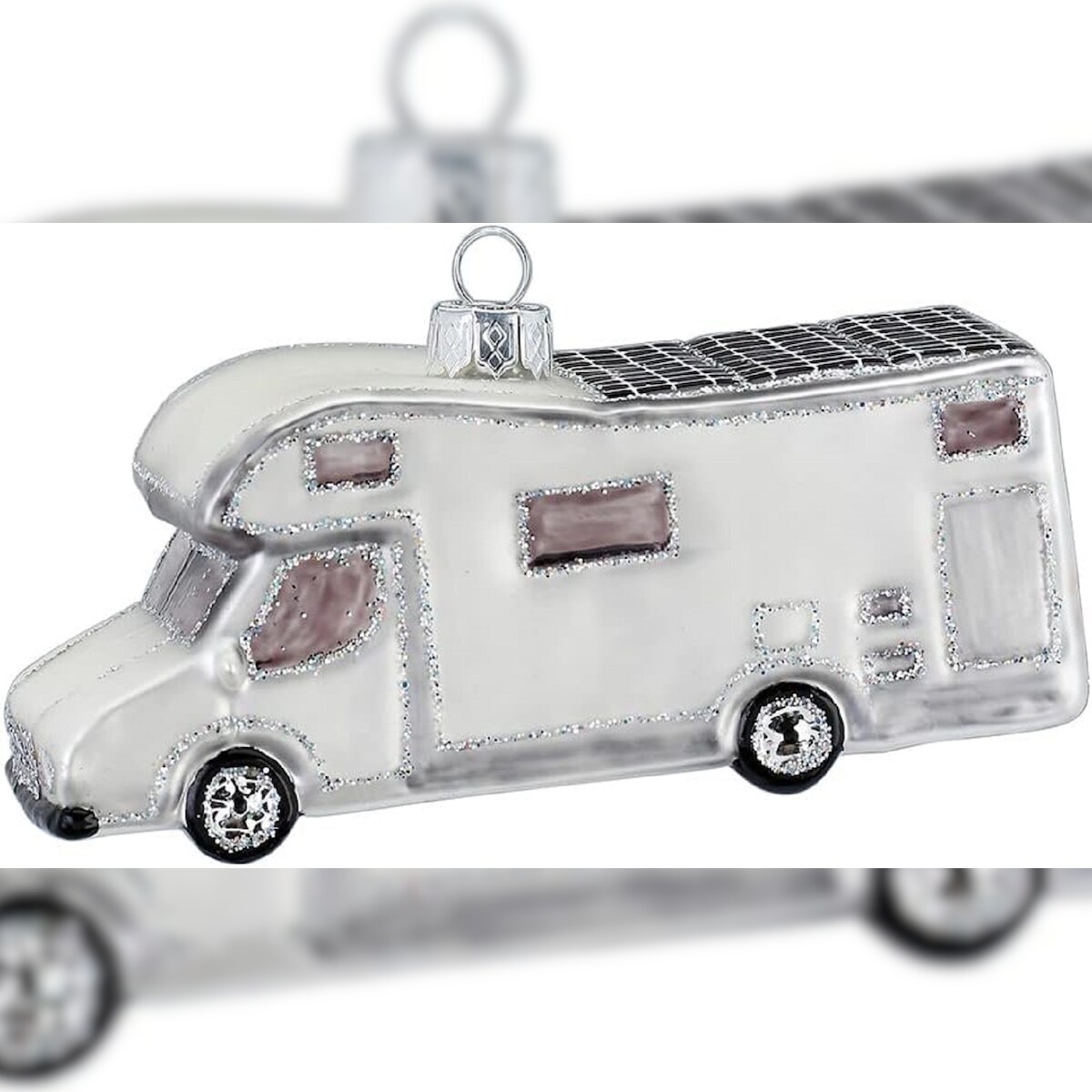 Inges Glas Christbaumschmuck Camper mit Glitzer Glas 7 cm weiß