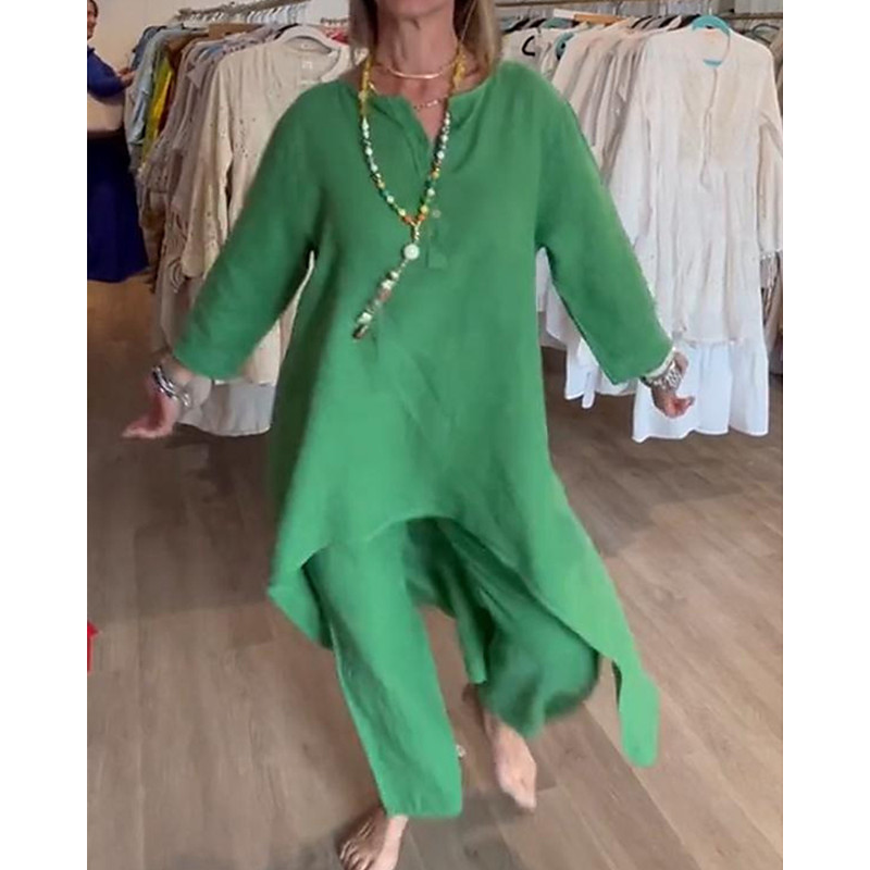 Women's Fashion Streetwear Shirt Cotton Linen Sets Two Piece Sets Linen Pants Pants Trousers Set Long Sleeve V Neck Solid Color Drawstring Daily Wear Date Black White Pink Spring Regular Fit