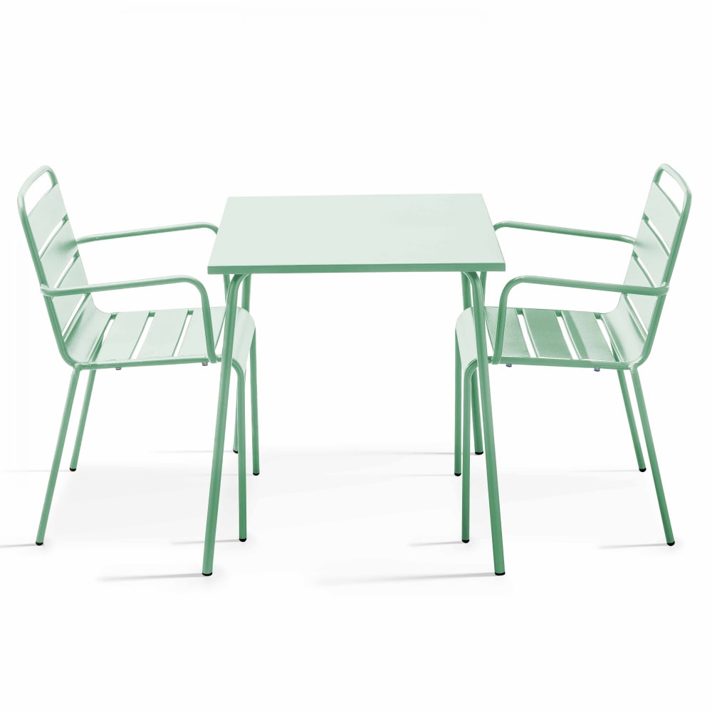 Tavolo da giardino quadrato e 2 sedie in acciaio verde salvia