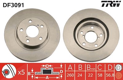 Trw Bremsscheibe [Hersteller-Nr. DF3091] für Subaru