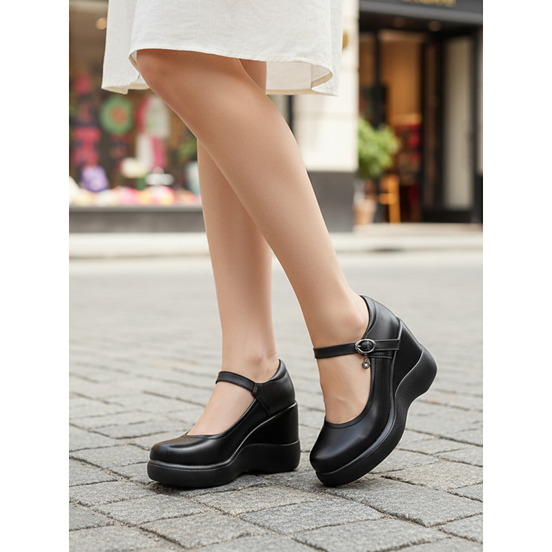 Women's Mary Jane Platform Shoes – Comfortable Wedge Pumps with Strap, Stylish Office Footwear for Work and Daily Wear