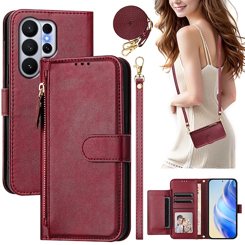 Handy Hülle Handyhüllen Für Samsung Galaxy S26 S26 Ultra Plus Brieftaschenhülle Mit Ständer Reisverschluss mit Trageriemen Retro TPU PU-Leder