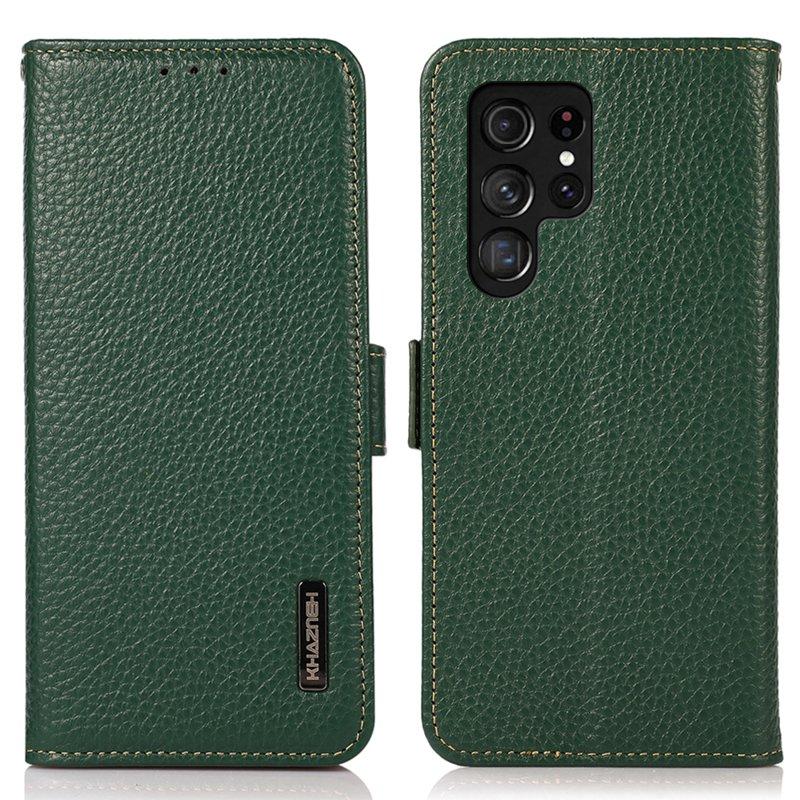 KHAZNEH Samsung Galaxy S26 Ultra Skal Äkta Läder RFID Skydd - Grön