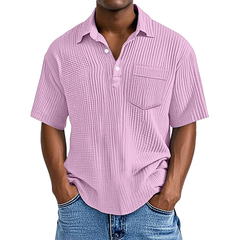 Men's Waffle Polo Shirt Golf Shirt Work Casual Lapel Short Sleeve Basic Modern Plain Button Spring Summer Regular Fit Lake blue Pea-Green Black Red Navy Blue Khaki Waffle Polo Shirt