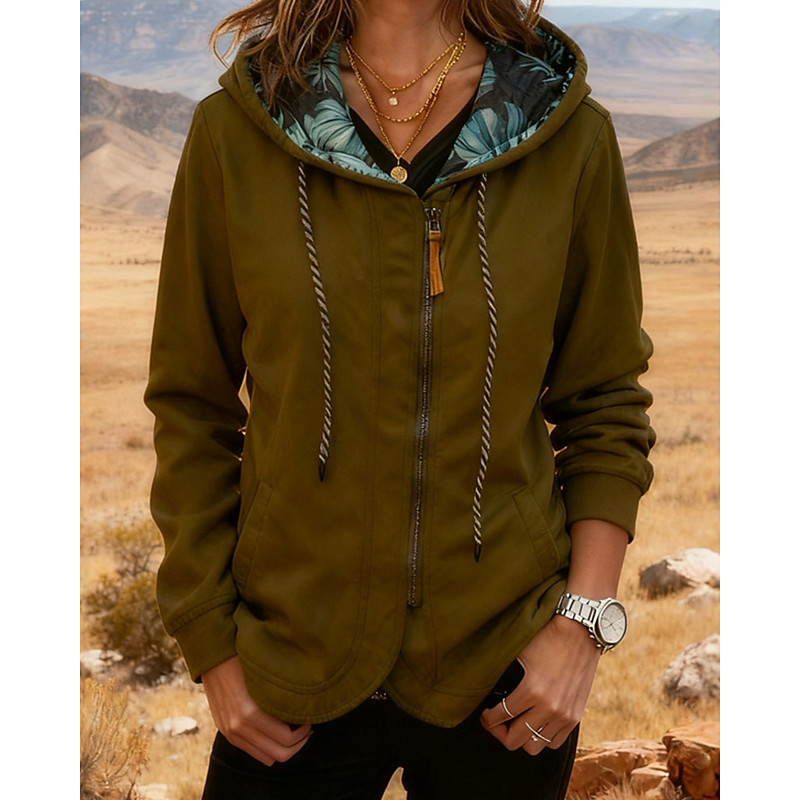 Women's Zip Up Hoodies Zip Up Sweatshirts Plain Elegant Warm Fashion Long Sleeve Hooded Regular Tops Home Work Street Drawstring Patchwork Zipper claret Navy Black Yellow Army Green Fall Winter