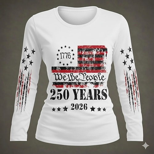 Maglietta patriottica per il Giorno dell'Indipendenza Americana 250° Anniversario Maglietta da donna Grafica Lettera Bandiera Stile classico casual Maniche lunghe Collo giro Collo rotondo Stampa