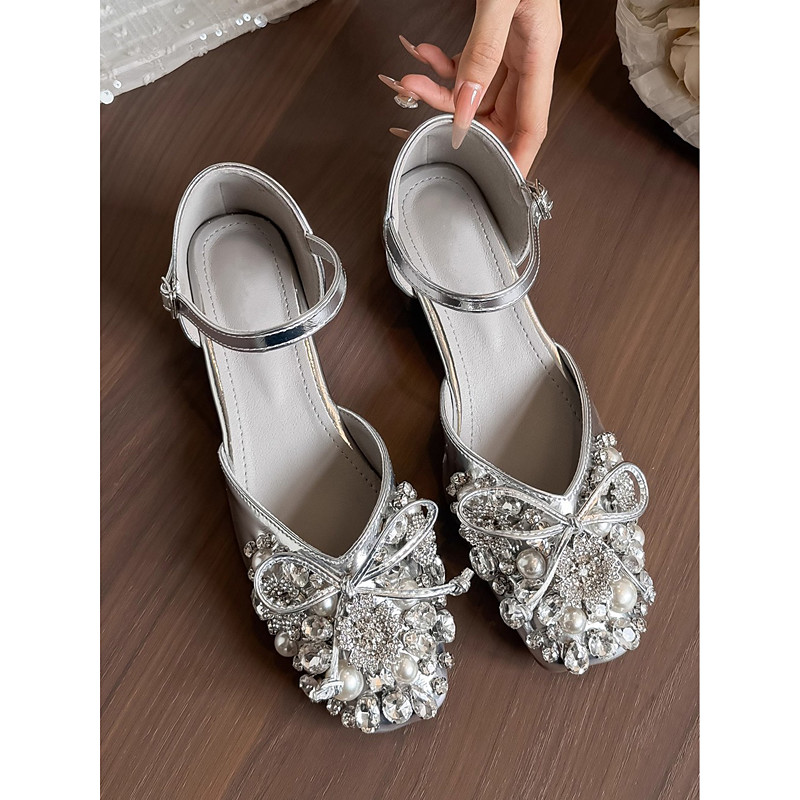 Women's Silver Rhinestone Pointed-Toe Kitten Heels – Elegant Low Heel Bridal Wedding Evening Party