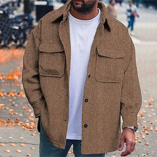 Herren Leichte Jacke Freizeitjacke Arbeitsjacke Lässig Täglich Tasche Button-Down Frühling Herbst Einfach Fischgrätenmuster Streetwear Stilvoll Umlegekragen Regulär Blau Schwarz Braun Grün Khaki