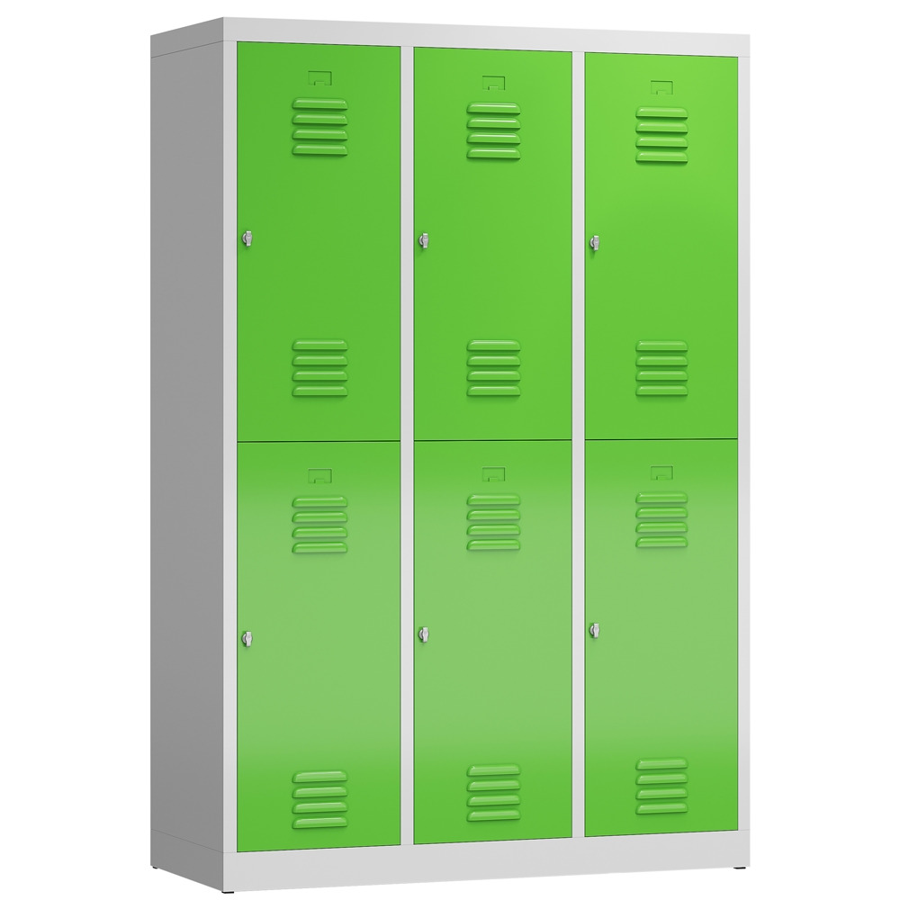ClassiX Garderobenschrank, 3 Abteile doppelstöckig, 1800 x 1185 x 500 mm, lichtgrau/gelbgrün