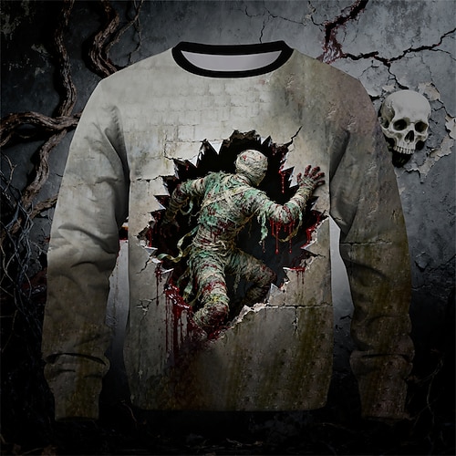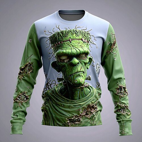 Halloween Herren Zombies 3D T Shirt Langarm T-Shirt 3D-Druck Rundhalsausschnitt Hemd Mode Übertrieben Straße Lässig Täglich Grün 1# Grün 2# Grün 3# Sommer Frühling Herbst Bekleidung S M L XL XXL XXXL