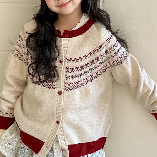 Bambini Ragazze Cardigan maglione Cuore All'aperto Manica Lunga Cardigan con Bottoni Moda 4-12 Anni Autunno Beige