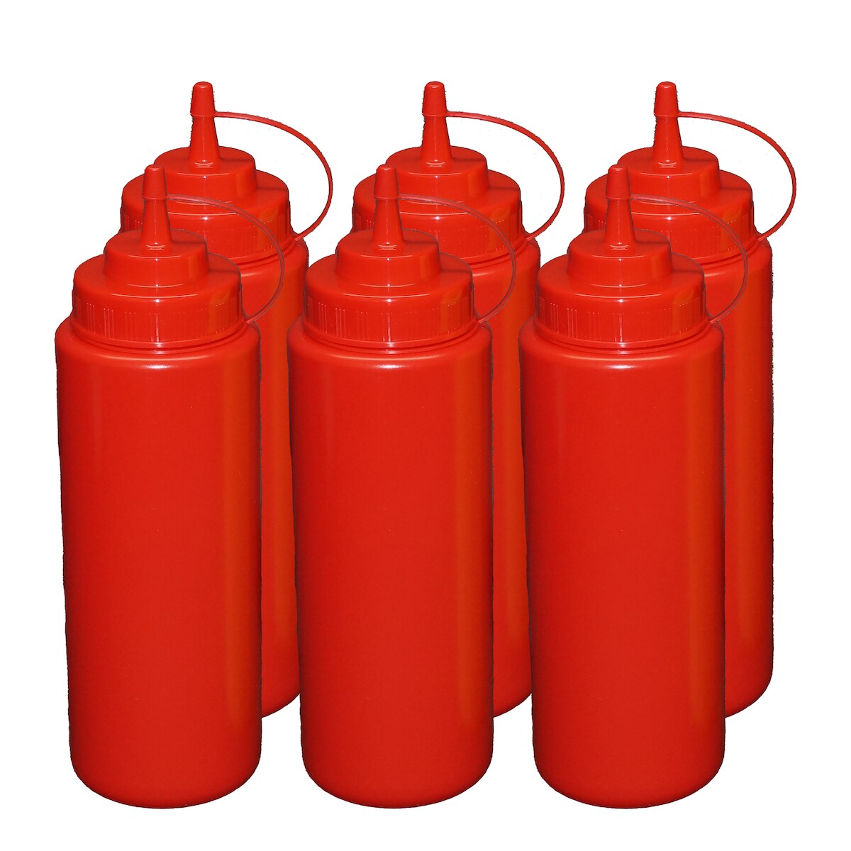 GVK ECO 6 Stück rote Quetschflaschen 1 Liter Dosierflasche Spenderflasche Dressingflasche