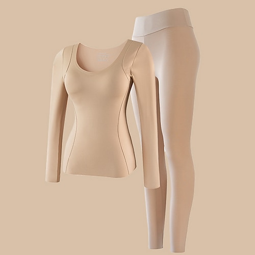 Damen Kaltes Wetter Oben Unten Basisschicht oben und unten Thermo-Unterwäsche-Set Dick Kombination Winter Beige Schwarz sportlich Laufen Yoga Warm Langarm Sport Sportkleidung