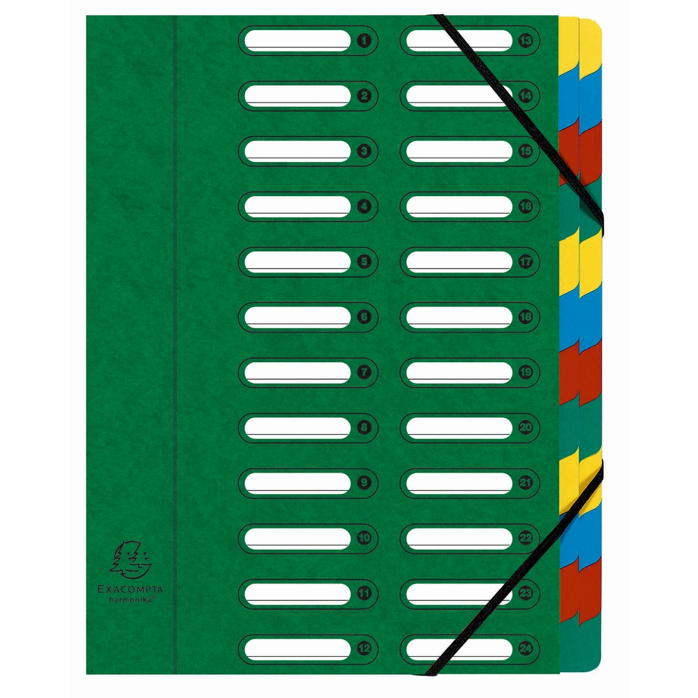Exacompta Ordnungsmappe HARMONIKA mit ausgestanzten Fenstern und Gummizug , aus Manilakarton, mit 24 Fächern, für DIN A4