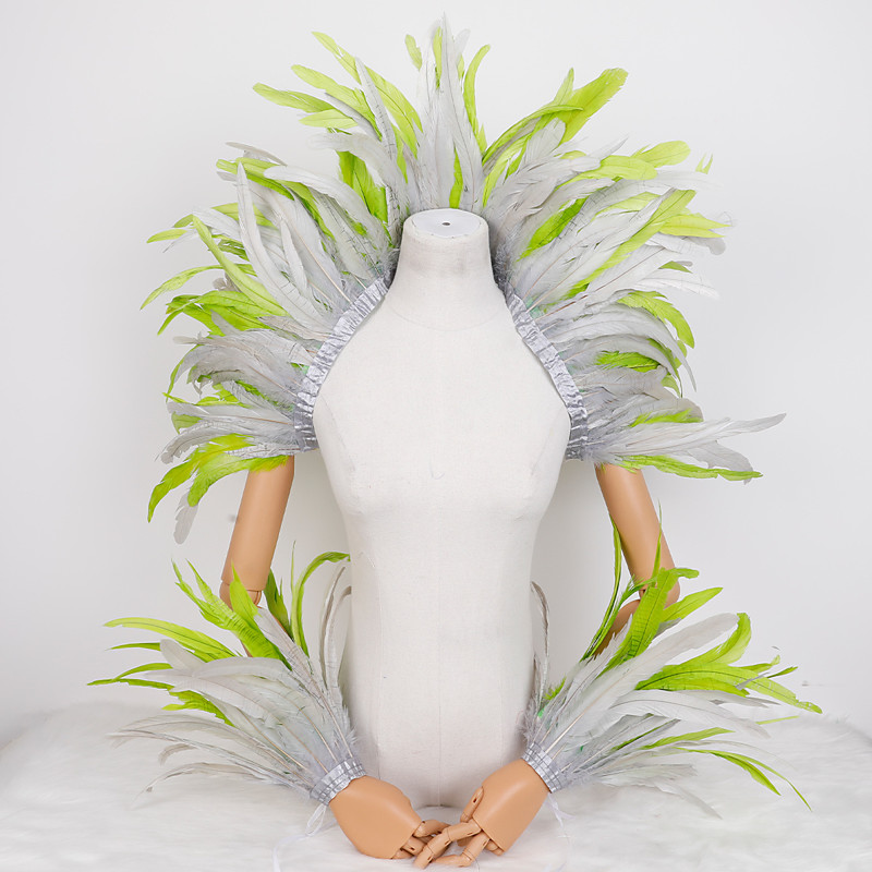 Rio Carnival Samba Accessories Carnival Red and Yellow Feather Costume Set Shoulder Cape Arm Cuffs for Mardi Gras, Dance Party Wear Brazil Festival Performance Costume