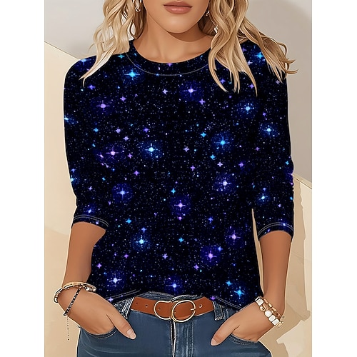 Per donna Maglietta Grafico A Pois Vintage Moda Elegante Manica Lunga Girocollo Top Regolari Quotidiano Weekend Stampato Blu Reale Autunno Inverno