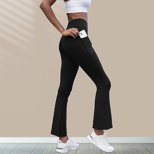 Per donna Attivo Pantaloni a zampa Casual / Sportivo Lunghezza intera Vita Alta Semplice Tasca Elastico in vita Sollevamento glutei Confortevole Elasticizzato Sportivo Sport Nero Rosa Verde militare