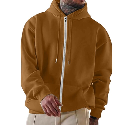 Per uomo Felpa con cappuccio Felpa con cappuccio a zip intera Felpa con cappuccio in pile Rosso bordeaux Nero Verde chiaro Rosa Verde militare Con Cappuccio Semplice Cerniera Sport Outdoor Casuale