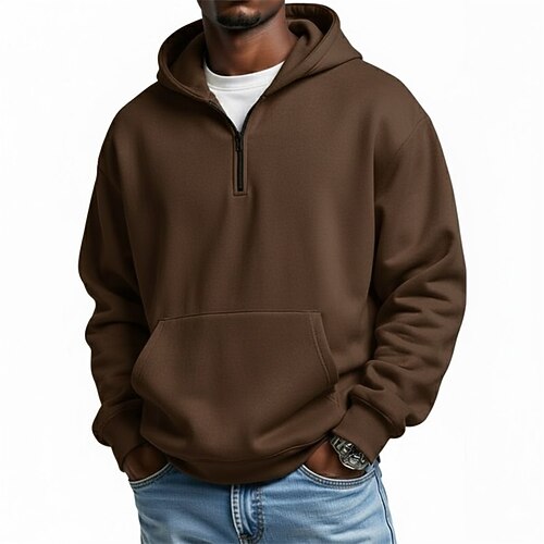 Per uomo Felpa con cappuccio Maglione Felpa con cappuccio e zip corta Nero Rosa Verde militare Blu Reale Cachi Con Cappuccio Semplice Tasca Zip a un quarto Sport Outdoor Casuale Quotidiano
