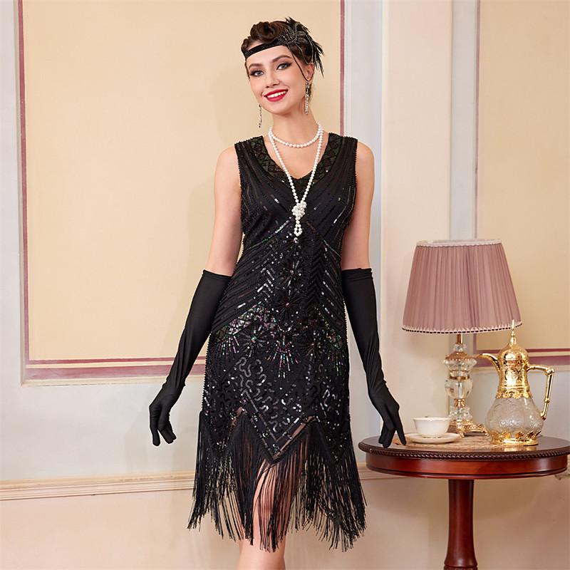 Retro Vintage Roaring 20s 1920s Flapper Dress Dress Outfits The Great Gatsby Sequins Tassel Fringe Fancy Dress Women's Party / Evening Masquerade Adults' Dress Gloves Stockings Spring Summer All