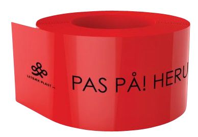 Kaapelin suojateippi punainen 2x100mm - rulla 50 m. Teksti: 'VAROITUS - SÄHKÖKAAPELIN ALLA'