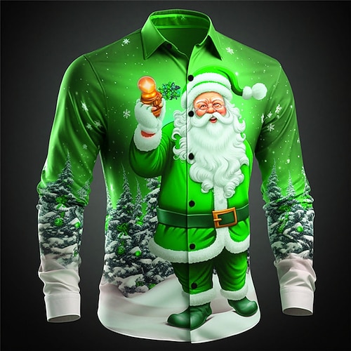 Weihnachten herren santa claus gedruckt hemden santa claus casual täglichen kleidung ausgehen herbstamp;Winter Turndown Langarmhemd aus 4-Wege-Stretchstoff in Weiß, Armeegrün, Rot S, M, L
