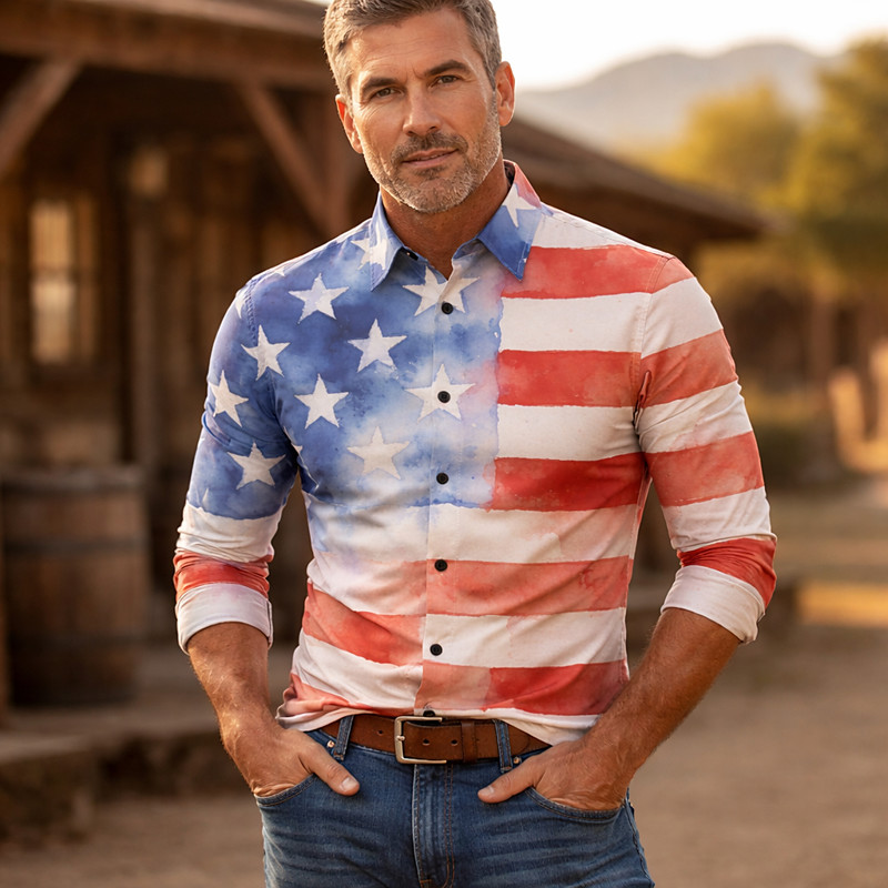 American 250 Retro Vintage 1970s Shirt Aloha Shirt Long Sleeves Hippie Geometic Ethnic Fancy Dress Men's Masquerade 4th of July Party Independence Day Semiquincentennial Adults' Shirt