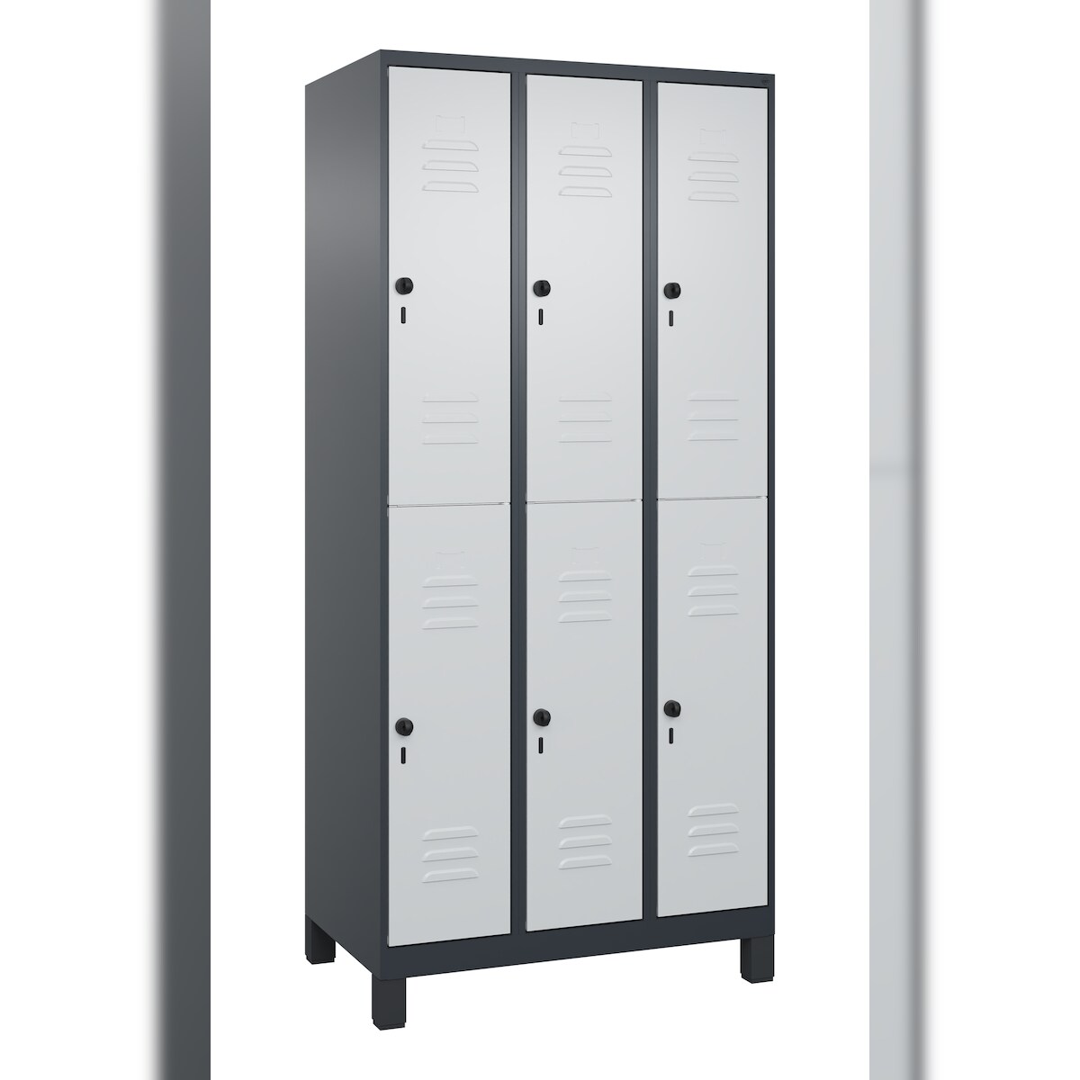 C+P Spind Classic PLUS, Füßen, 6 Abteile, HxBxT 195x90x50cm, Sicherheitsdrehriegel, Anthrazit/Hellgrau von PROREGAL