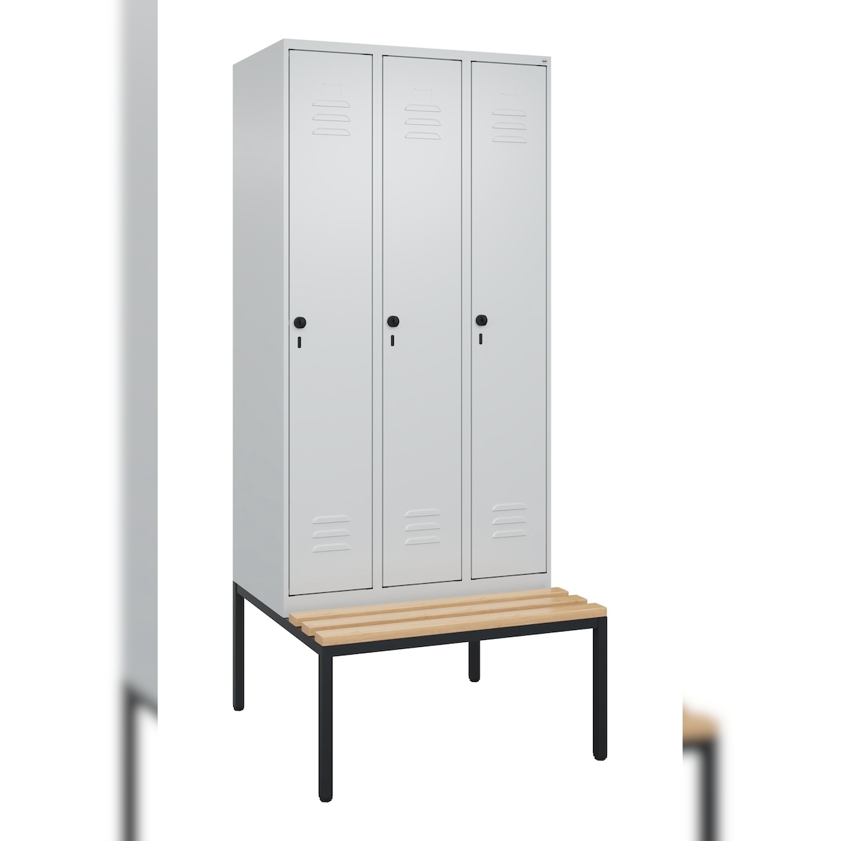 C+P Spind Classic PLUS, Buche untergebaute Sitzbank 3 Abteile, HxBxT 212x90x82cm, Sicherheitsdrehriegel, Hellgrau/Hellgrau von PROREGAL