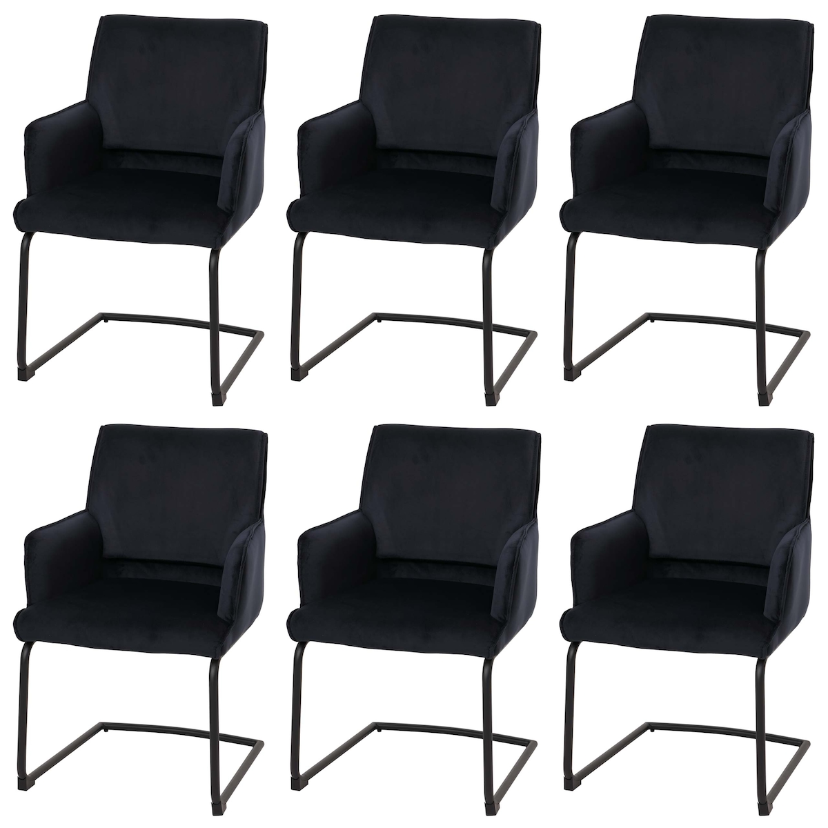 Mendler 6er-Set Freischwinger HWC-N60, Esszimmerstuhl Küchenstuhl Stuhl, Stoff/Textil Öko-Tex ~ anthrazit-blau