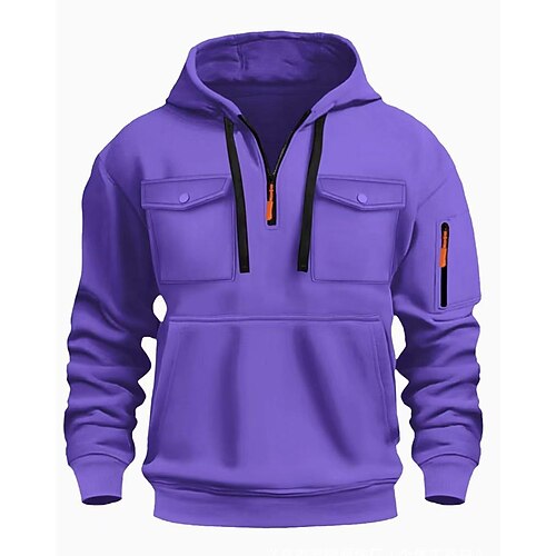 Per uomo Felpa con cappuccio Felpa con cappuccio e zip corta Nero Bianco Vino Verde militare Rosso Con Cappuccio Semplice Tasca Zip a un quarto Sport Outdoor Quotidiano Ferie Poliestere Streetwear