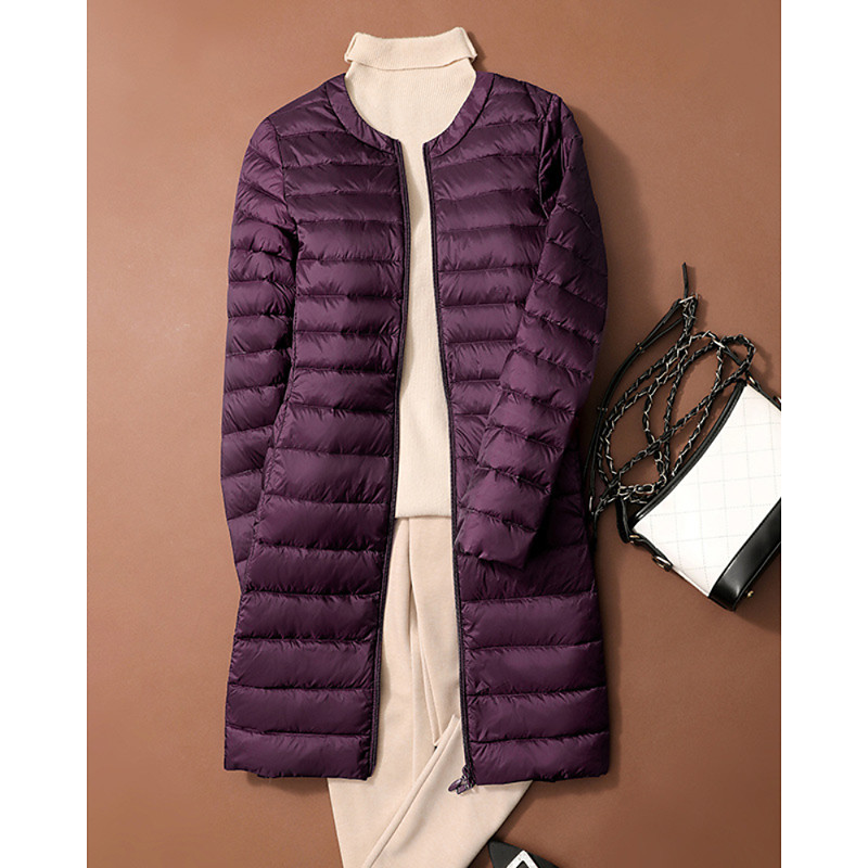 Women's Down Jacket Coat Warm Comfortable Zipper Pocket Fashion Plain Daily Wear Going out Casual Daily Weekend Zipper Long Crewneck Regular Fit Long Sleeve Outerwear Silver Purple Khaki Fall Winter
