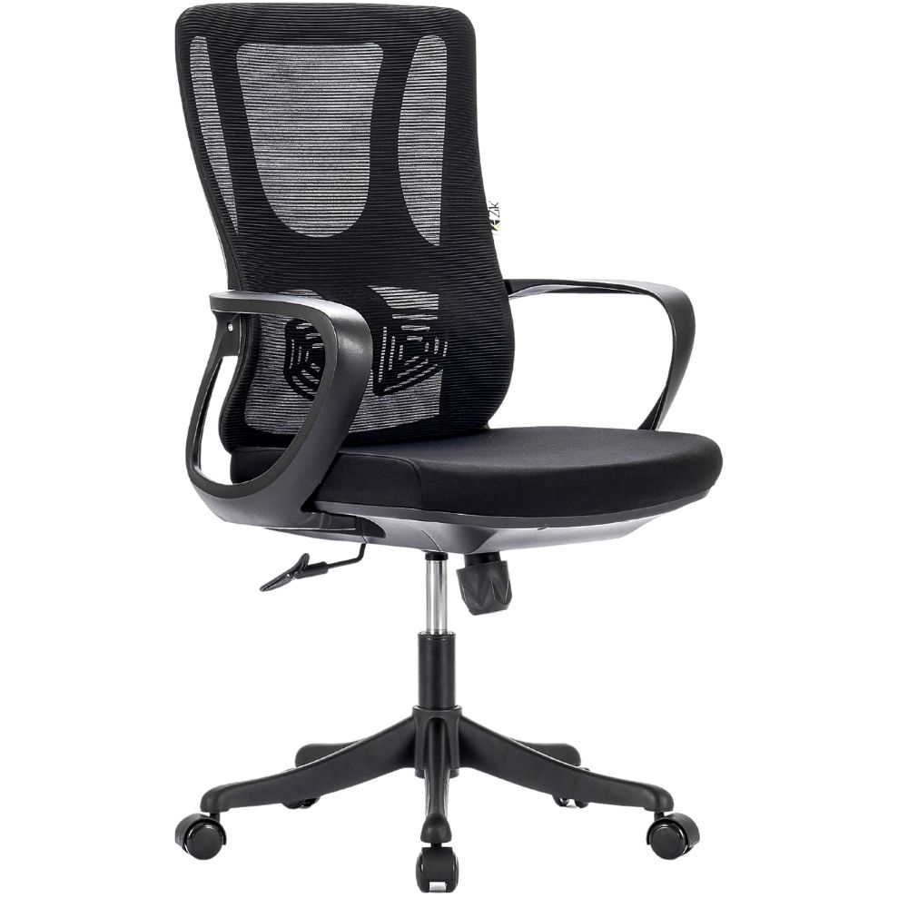 ZIK Ergonomischer Bürodrehstuhl, Sessel mit Armlehnen und Lendenwirbelstütze, drehbar und verstellbar Stoff Schwarz