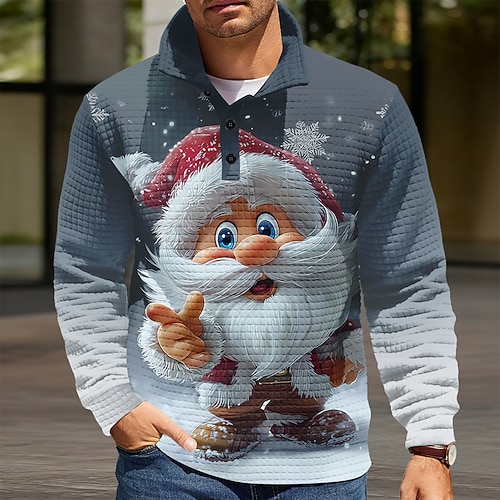 Natale Per uomo Babbo Natale Nido d'ape Felpa Quotidiano Classico Casual Collo alla coreana All'aperto Casa Lavoro Regalo Blu Bianco Grigio Bottoni Autunno Inverno progettista S M L XL XXL XXXL