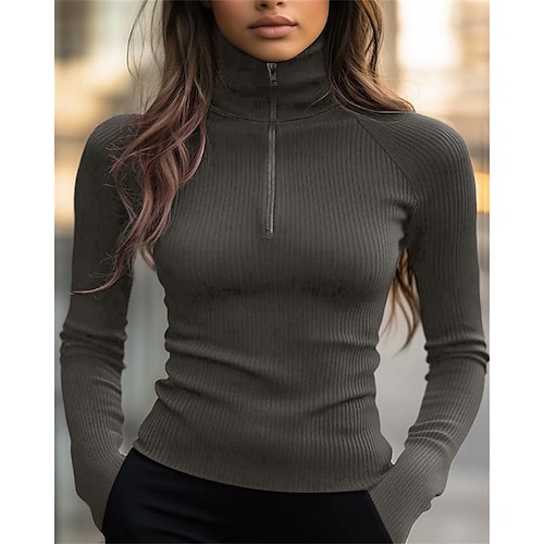 Per donna Felpa Maglione Elegante Moda Streetwear Tinta unica Collo alla coreana Patchwork Cerniera Lavorato a maglia Manica Lunga Top Regolari Maglia All'aperto Casa Lavoro Nero Rosso Autunno Inverno