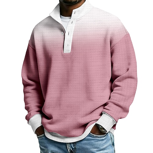 Per uomo Geometrico Plaid Nido d'ape Felpa Moda Quotidiano Classico Casual Collo alla coreana Zip a un quarto All'aperto Casa Ufficio Lavoro Giallo Viola Arancione Grigio Con zip Autunno Inverno