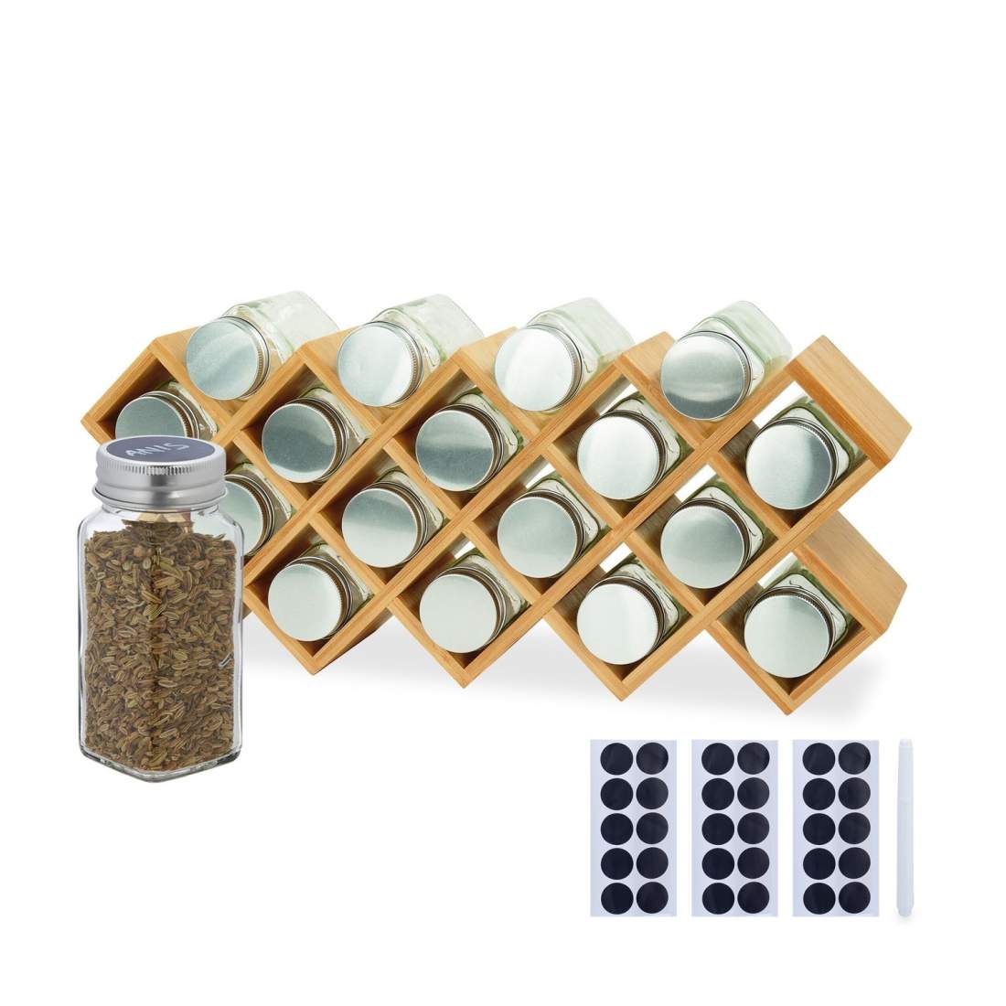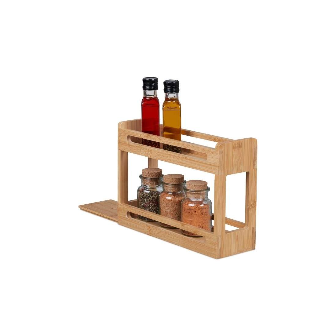 Krydderhylle i bambus med krukker – plassbesparende kjøkkenorganisator