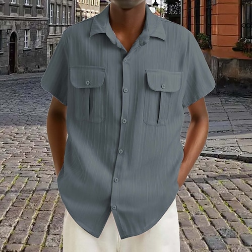 Per uomo Camicia Tessuto Camicia da lavoro Camicia Jacquard Marrone Scuro Nero Bianco Rosa Vino Manica Corta Semplice Bavero Quotidiano Vacanza Tasca Abbigliamento Streetwear Casual