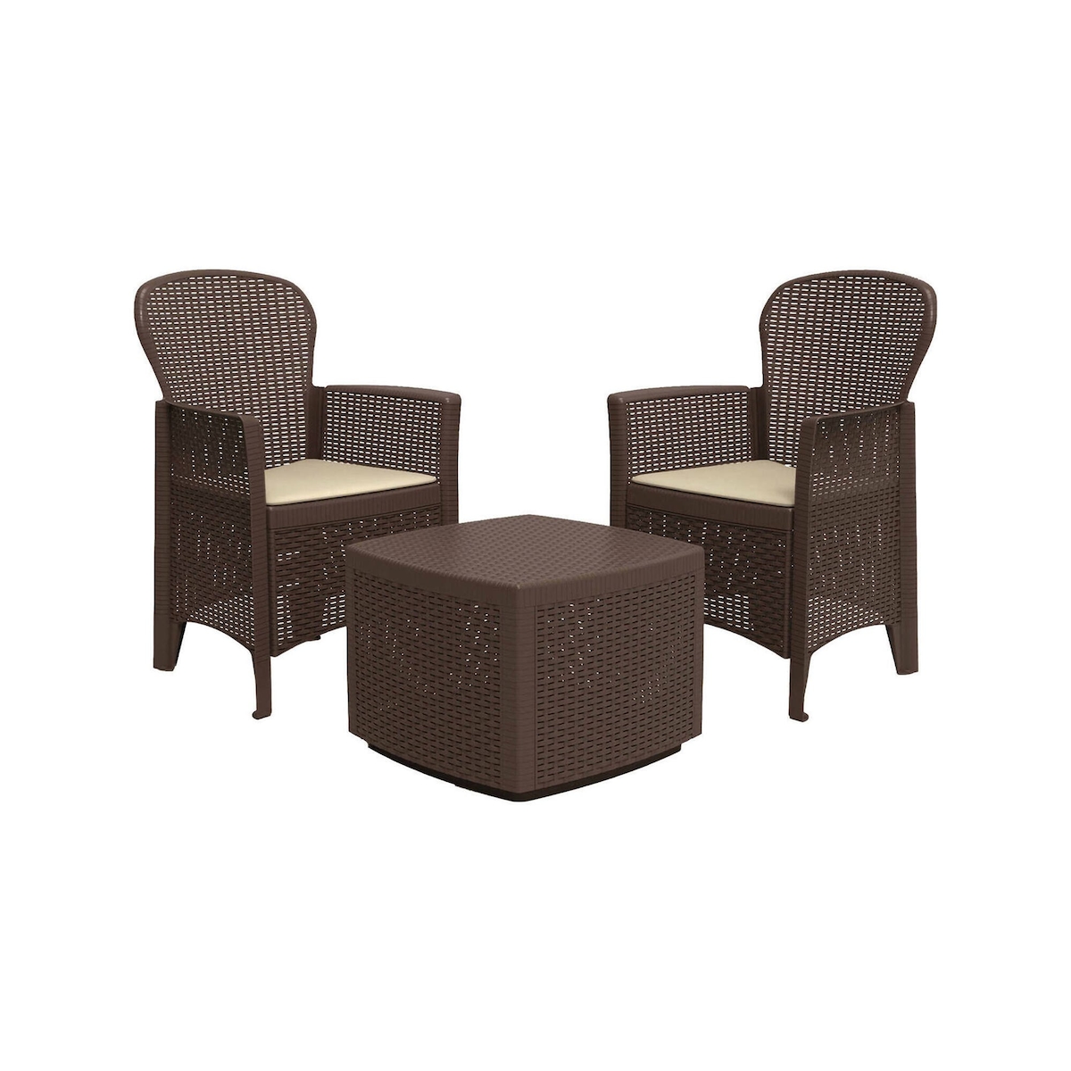 Dmora Outdoor-Lounge-Set Napoli, Gartengarnitur mit 2 Sesseln und 1 Containertisch, Sitzecke in Rattan-Optik, 100 % Made in Italy, Braun