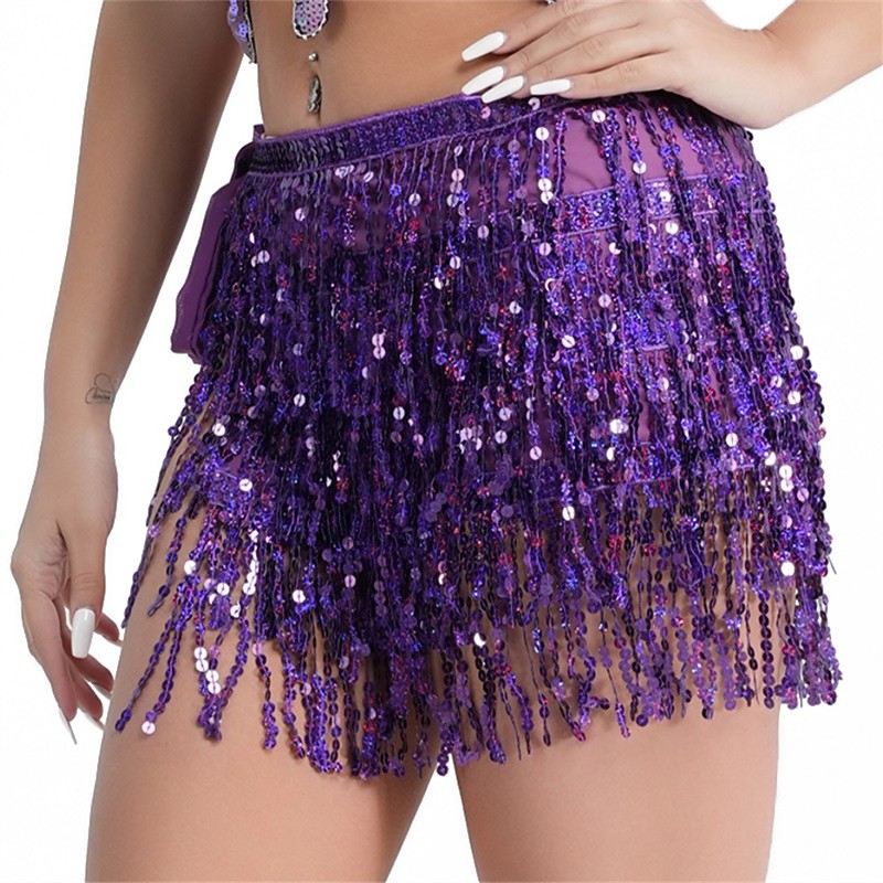 Carnival 2026Rio Carnival Samba Dancewear Belly Dance Skirt Sequin Tassel Skirt Wrap Sparkly Tinsel Fringe Skirts with Sequins and Coins Performance Costume Brazil Festival Performance Costume