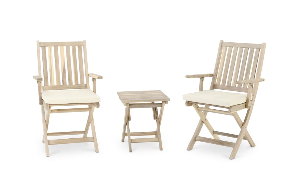 Set di tavolini da terrazza per balcone, 2 sedie con cuscini