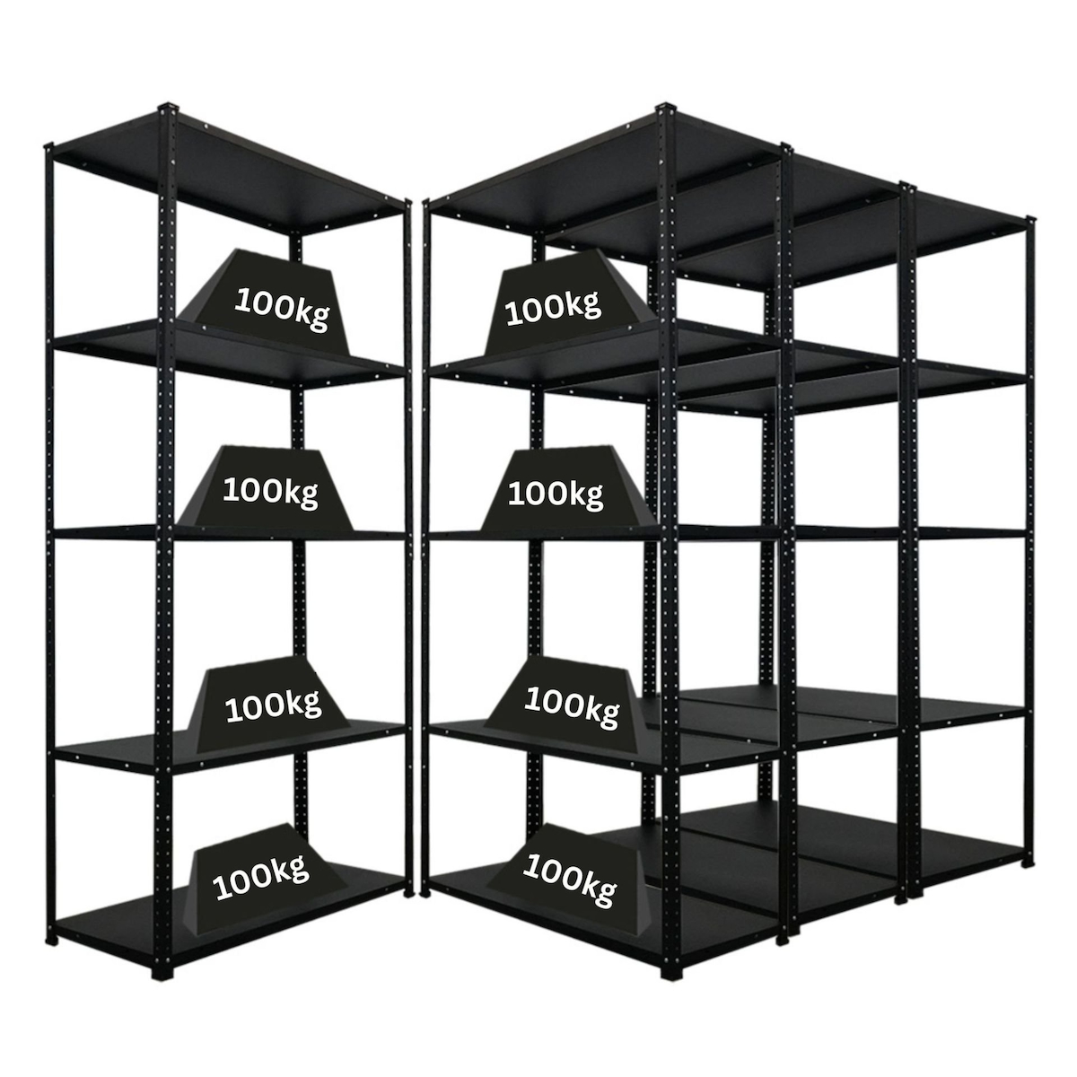 PROREGAL Mega Deal | 4x Schraubregal Haldor | HxBxT 180x90x40cm | Fachlast 100 kg | Schwarz | Schraubsystem Lagerregal Regalsystem 4 Stk.